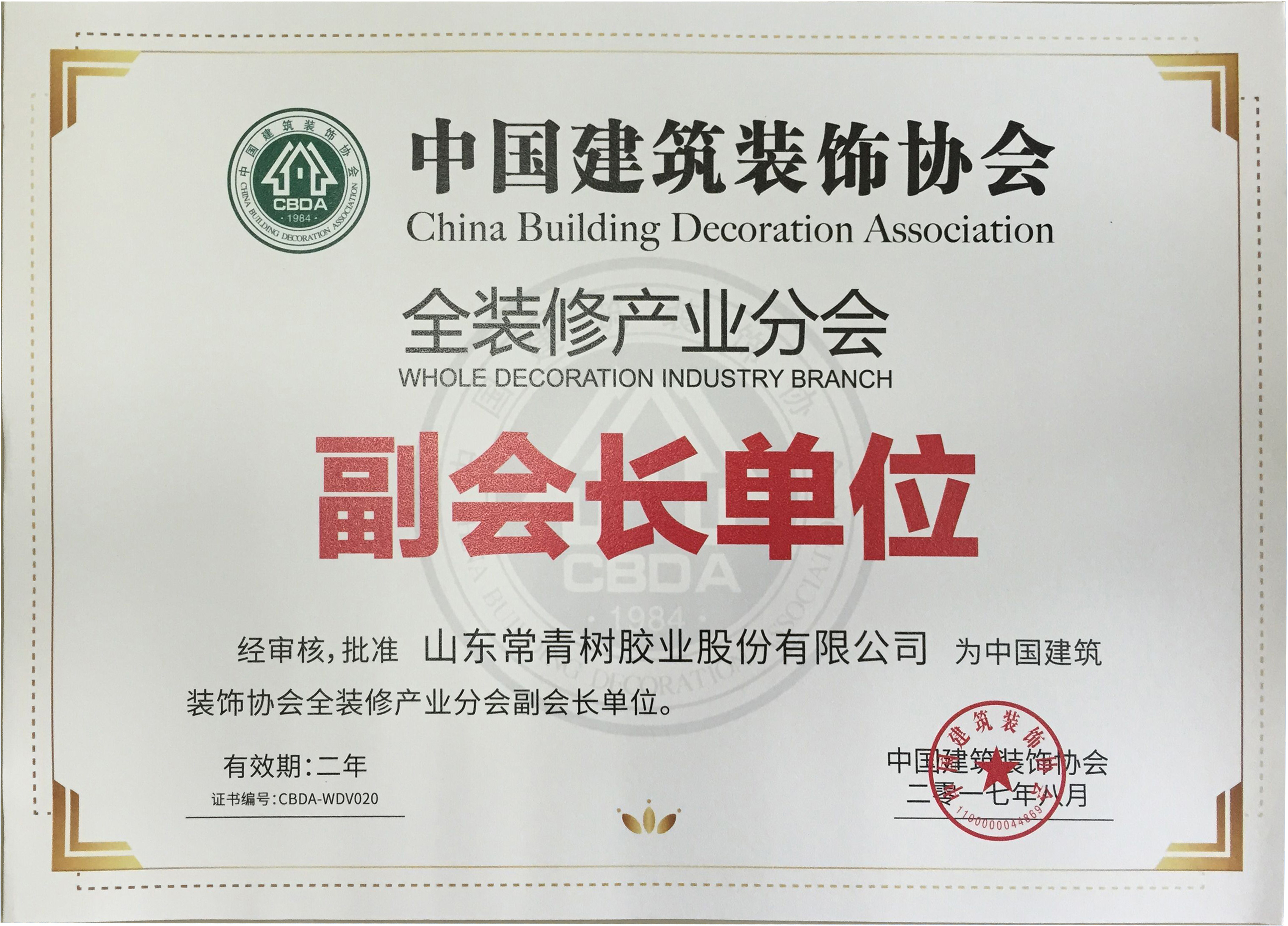 2017年,中國建筑裝飾協(xié)會會員證書
