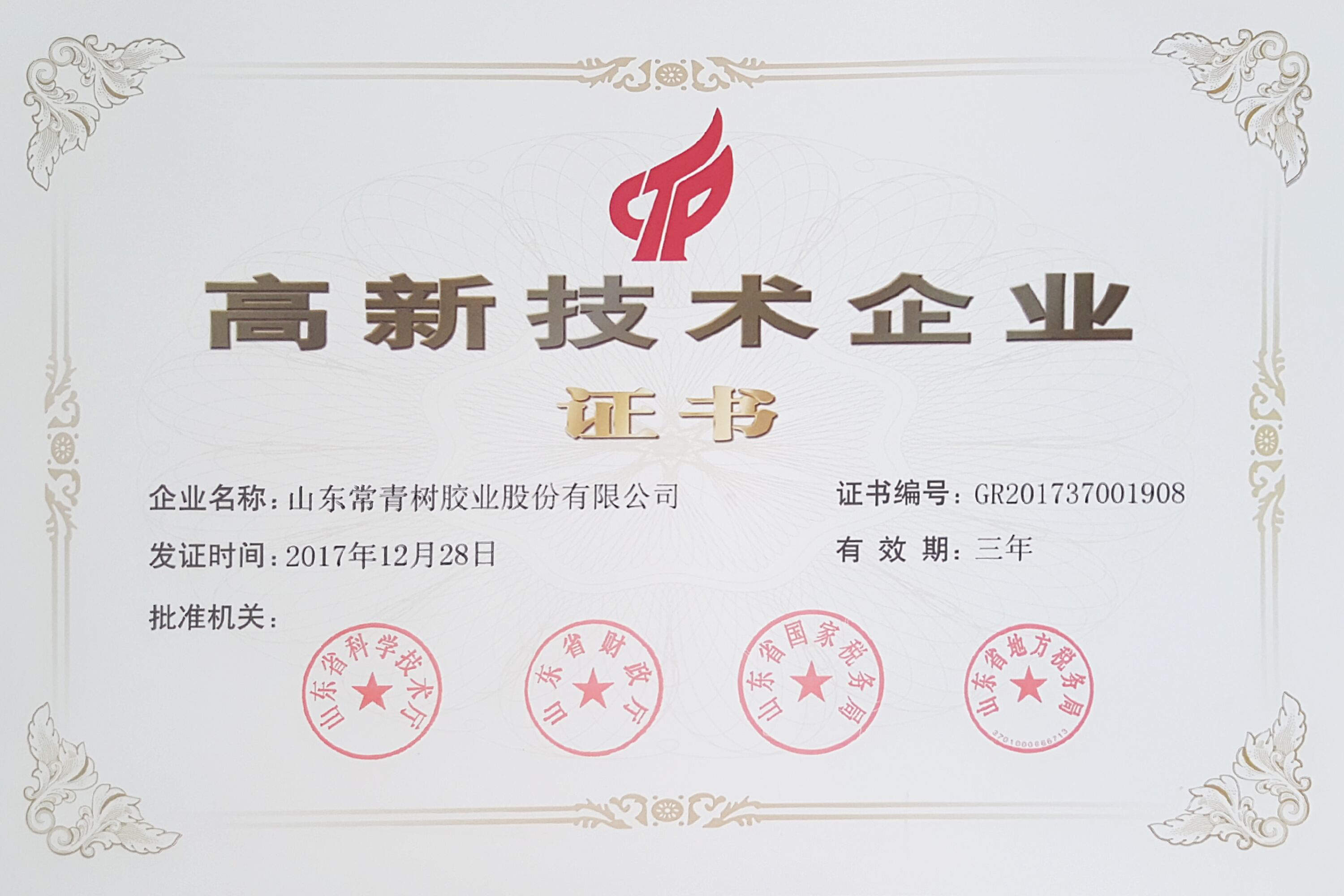 2017年,東營市科技型企業(yè)認(rèn)定證書